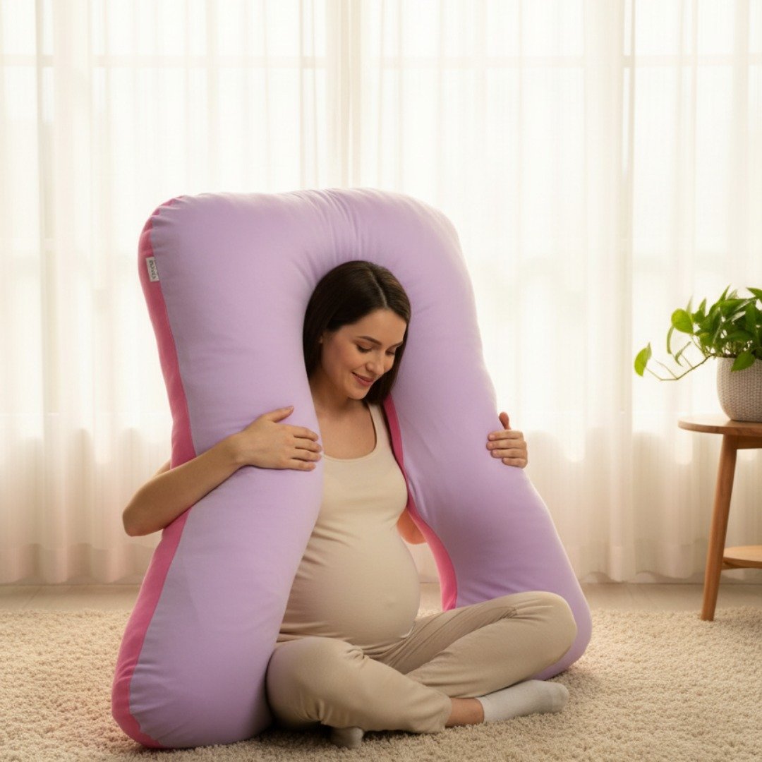 La forma de la almohada en “U” o “herradura” es ideal para el embarazo y la