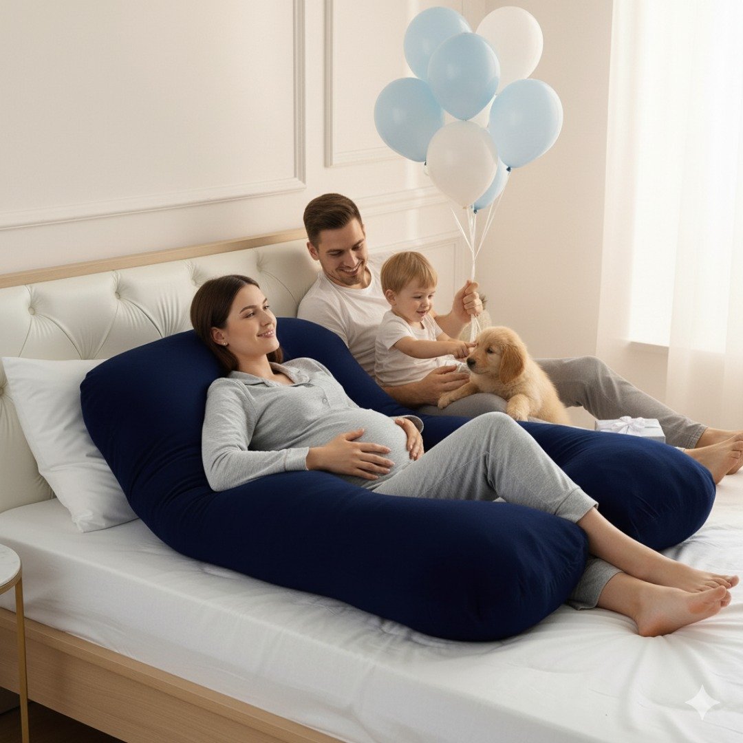 La forma de la almohada en “U” o “herradura” es ideal para el embarazo y la