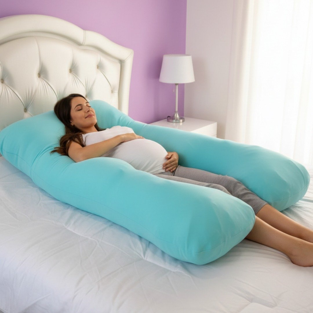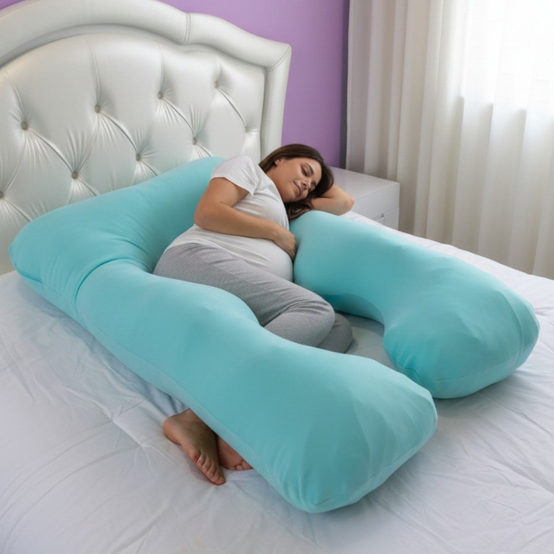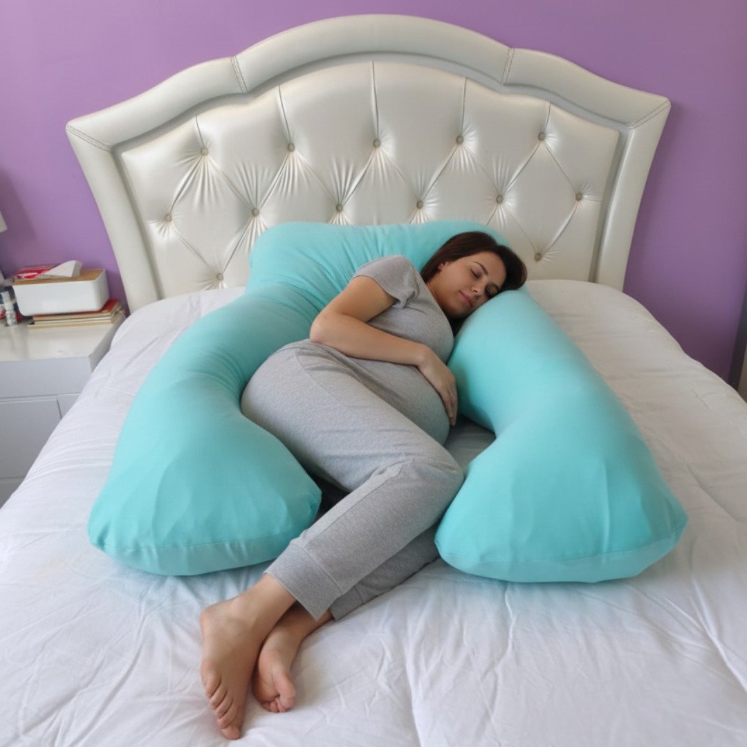 La forma de la almohada en “U” o “herradura” es ideal para el embarazo y la