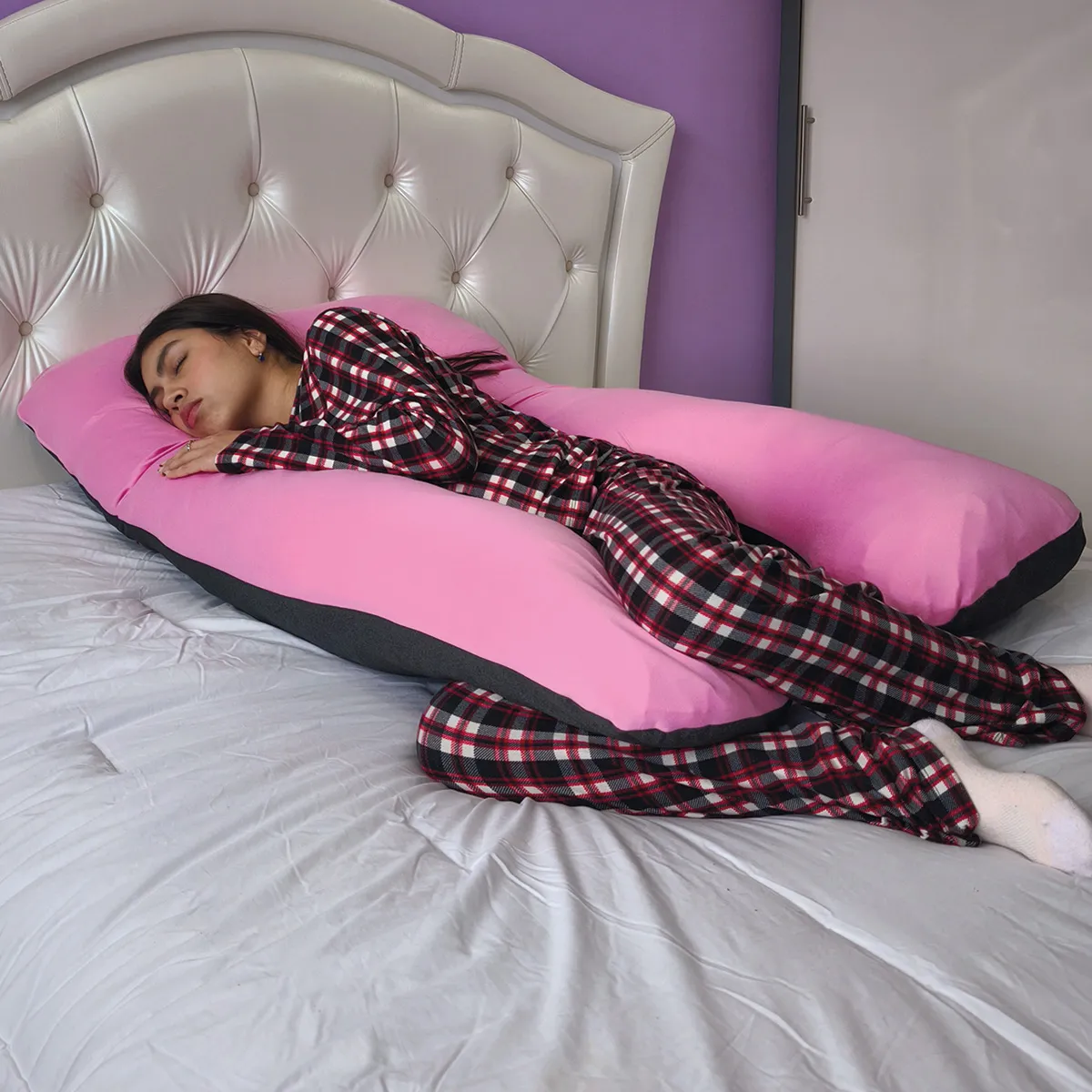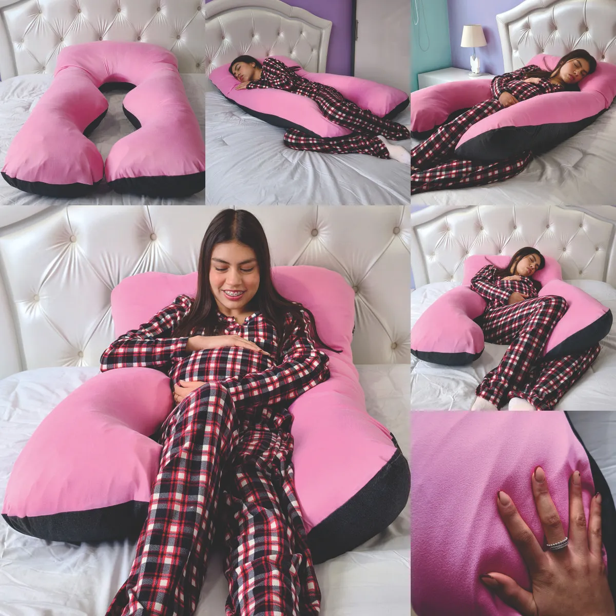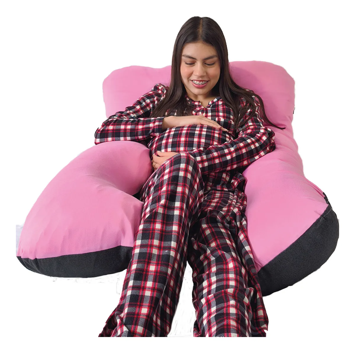 Almohada Novadesk Descanso Embarazo y Lactancia (Tamaño Jumbo) – Rosa/Gris Combinado