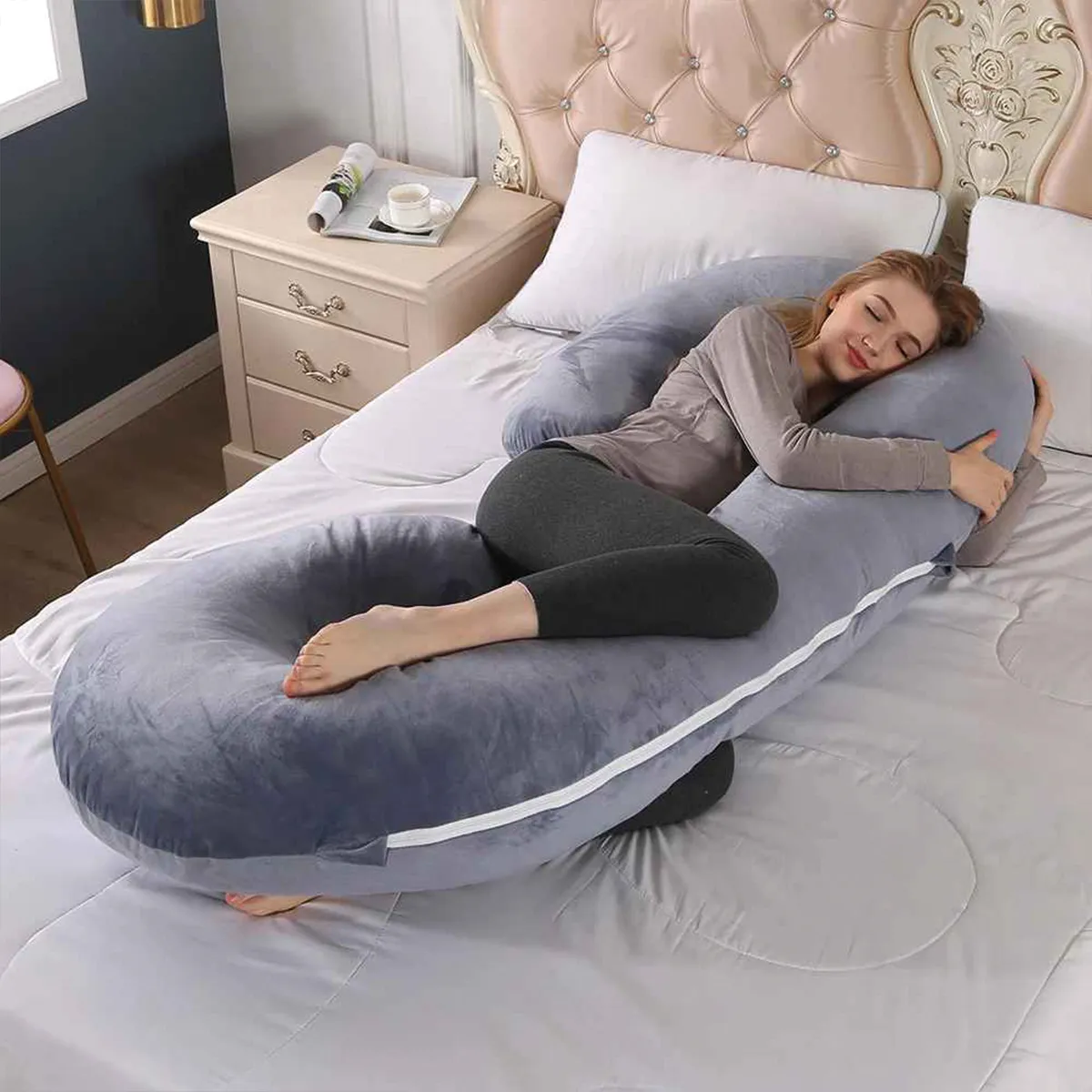A medida que tu cuerpo cambia, encontrar una posición cómoda para dormir se vuelve un desafío. Nuestra almohada ergonómica en forma de C abraza suavemente todo tu cuerpo, aliviando la presión en puntos clave como la espalda baja, el abdomen y las piernas. Despídete de los dolores y las noches de insomnio y despierta sintiéndote renovada.